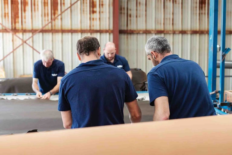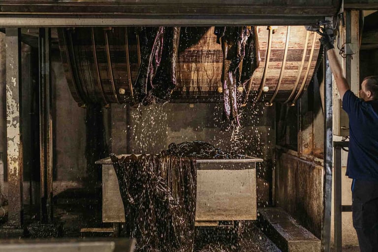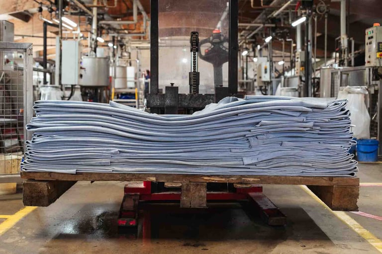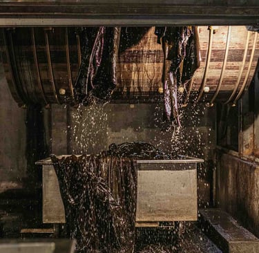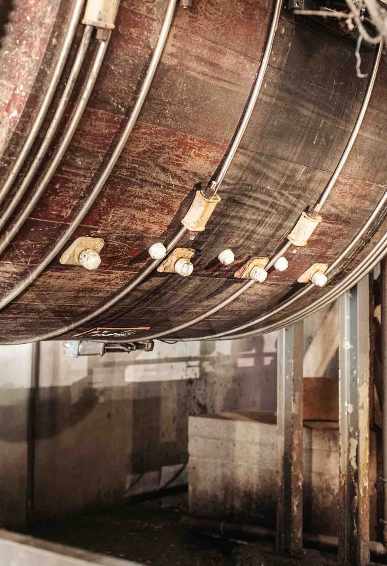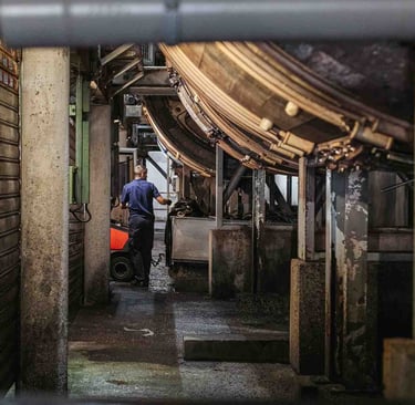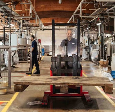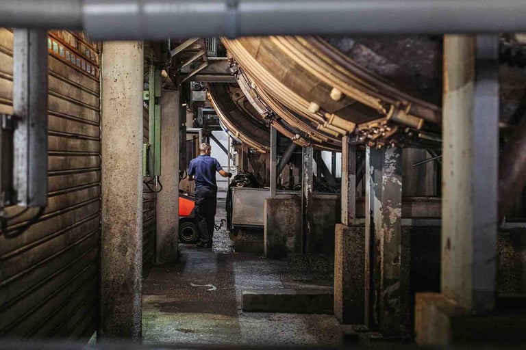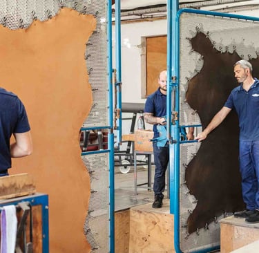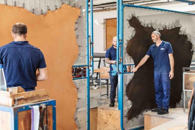 Ici, dans cet endroit incroyable à Saint-Pée-sur-Nivelle, on travaille le cuir depuis 1927. La tannerie est immense et se divise en petits ateliers. Des machines anciennes côtoient les plus modernes, et bien que le processus soit le même, il s’est adapté aux contraintes actuelles et aux dernières évolutions. Ici, ça bouge partout, tout le temps, et vite. Le travail se fait souvent en binôme, les peaux sont lourdes et grandes. Elles tournent sur des supports, sont suspendues ou “volent”. Tout est fait ici, et tout est fascinant à regarder. Les foulons sont d’immenses cuves qui servent à teinter les peaux, c’est très impressionnant ! L’atelier de teinture crée chaque couleur avec une précision manuelle. L’assouplissement est réalisé avec la dextérité des artisans. Tout va vite, et tout prend son temps ici. Dans chaque atelier, l’ambiance, le travail et la lumière sont uniques.